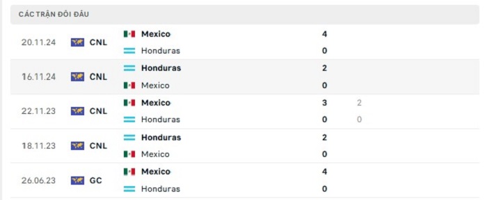 Những năm qua Mexico ít nhiều cũng thể hiện được thành công của mình trước Honduras, trong tổng cộng 5 lần gặp nhau gần nhất của hai đội thì Mexico thắng 3 và thua 2 trước đối thủ này.